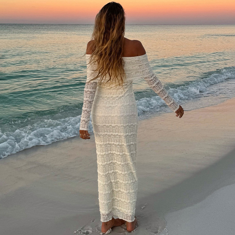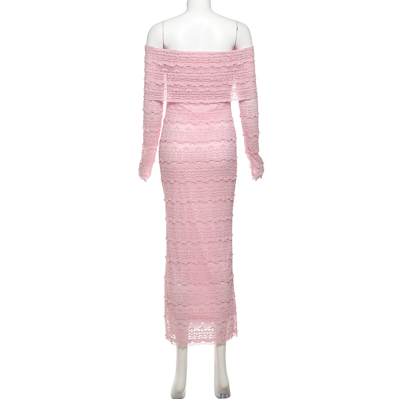 Amazon New Fashionable Elegant Socialite Style Off-shoulder Lace Dress Women