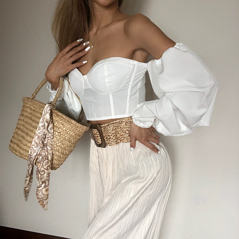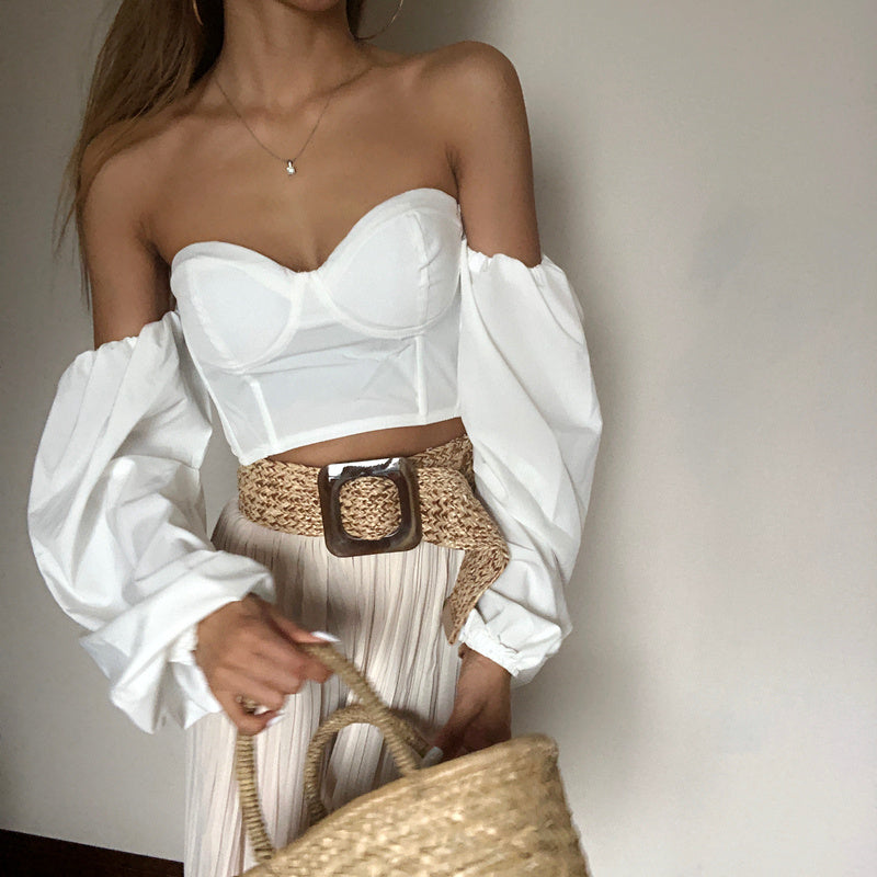 Bohemian Low-cut Waistband Straight Neck Long Sleeve