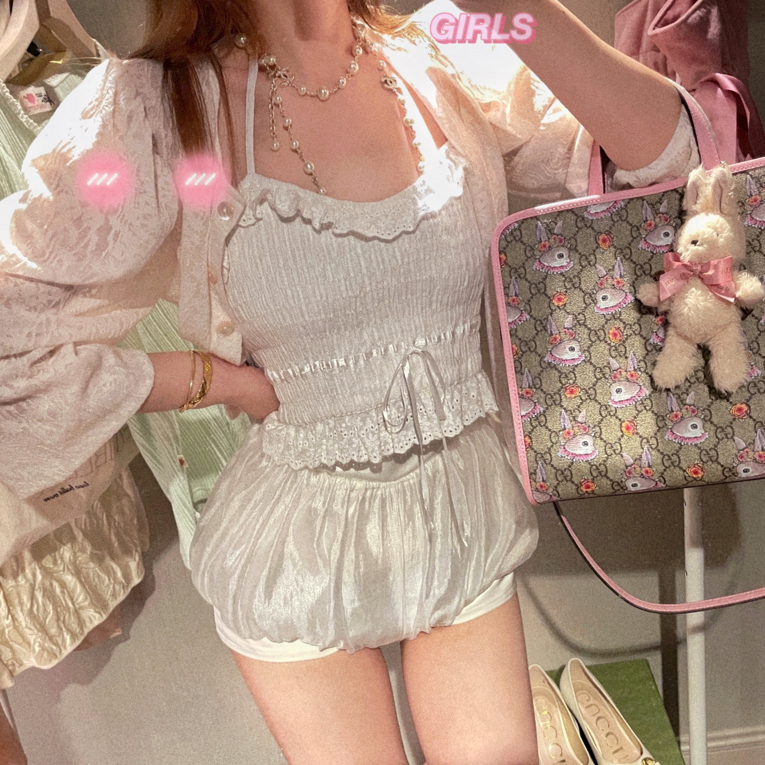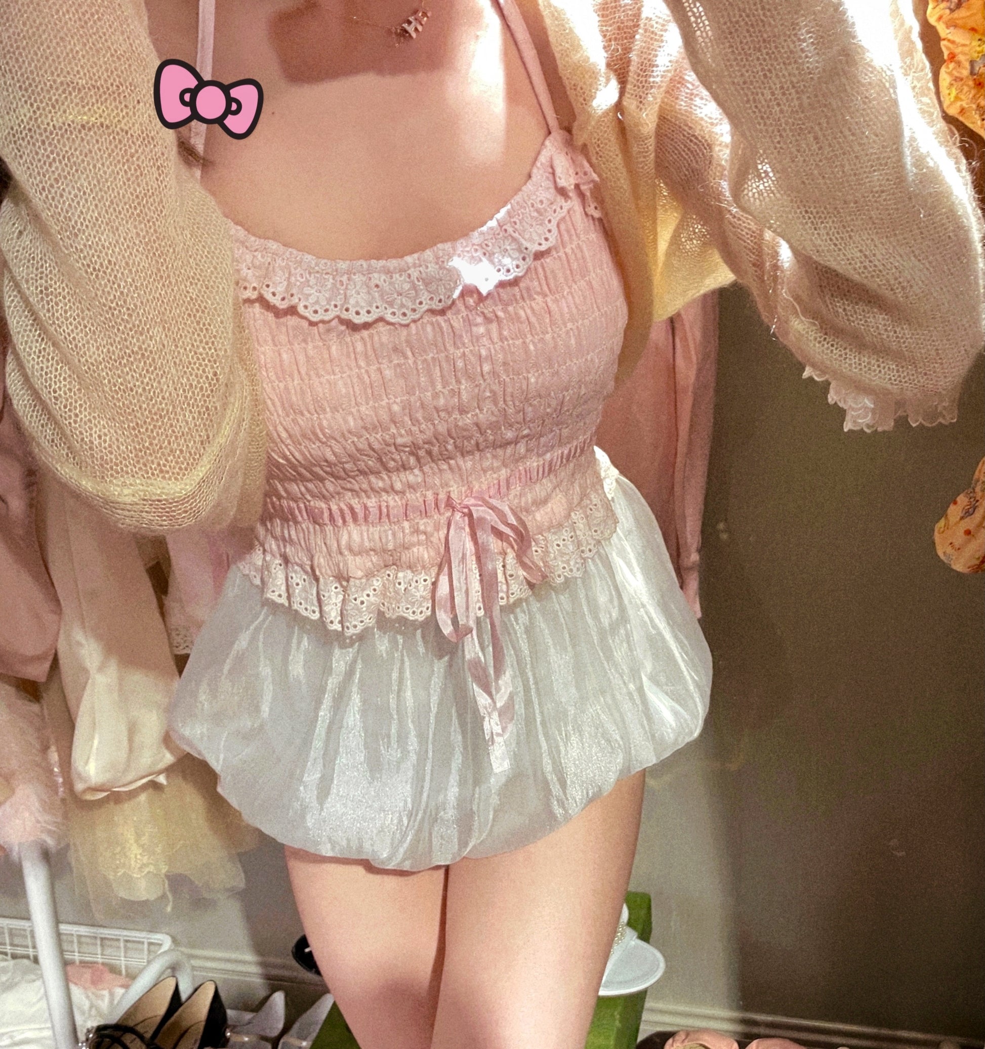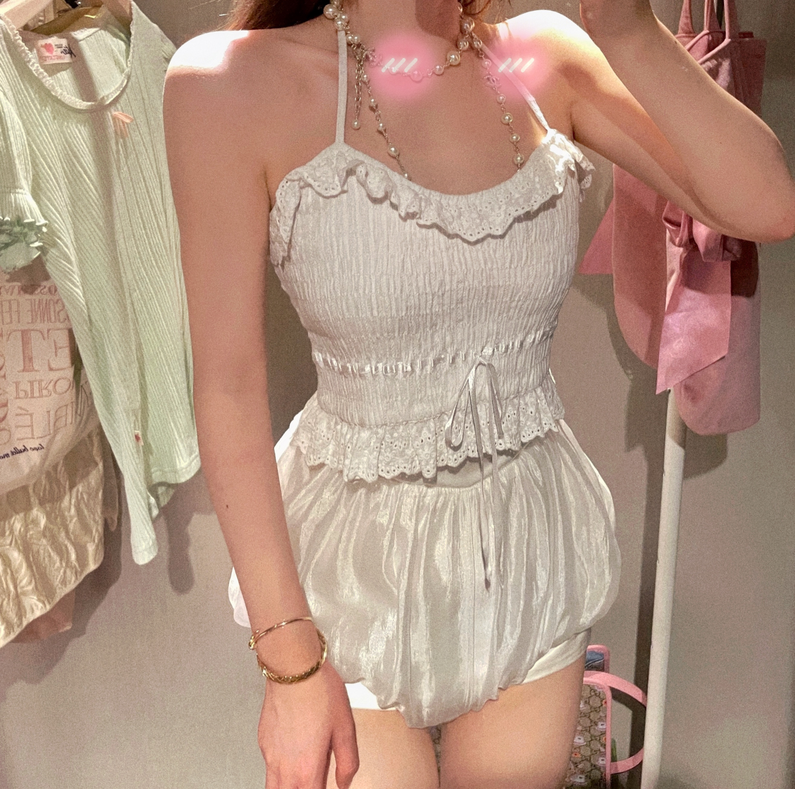 Camisole Women's Summer Wear Early Autumn White Slim Short Style Lace Halterneck Top