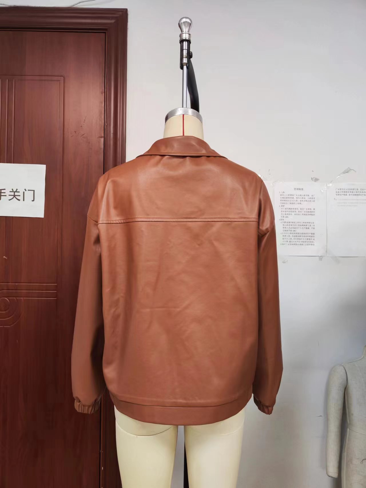 Casual Long Sleeve Solid Color PU Lapel Jacket