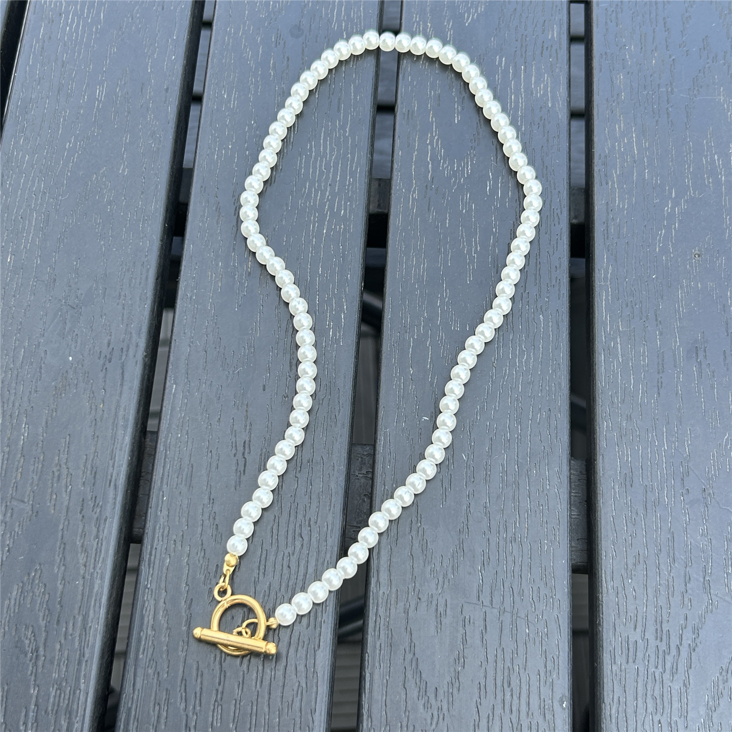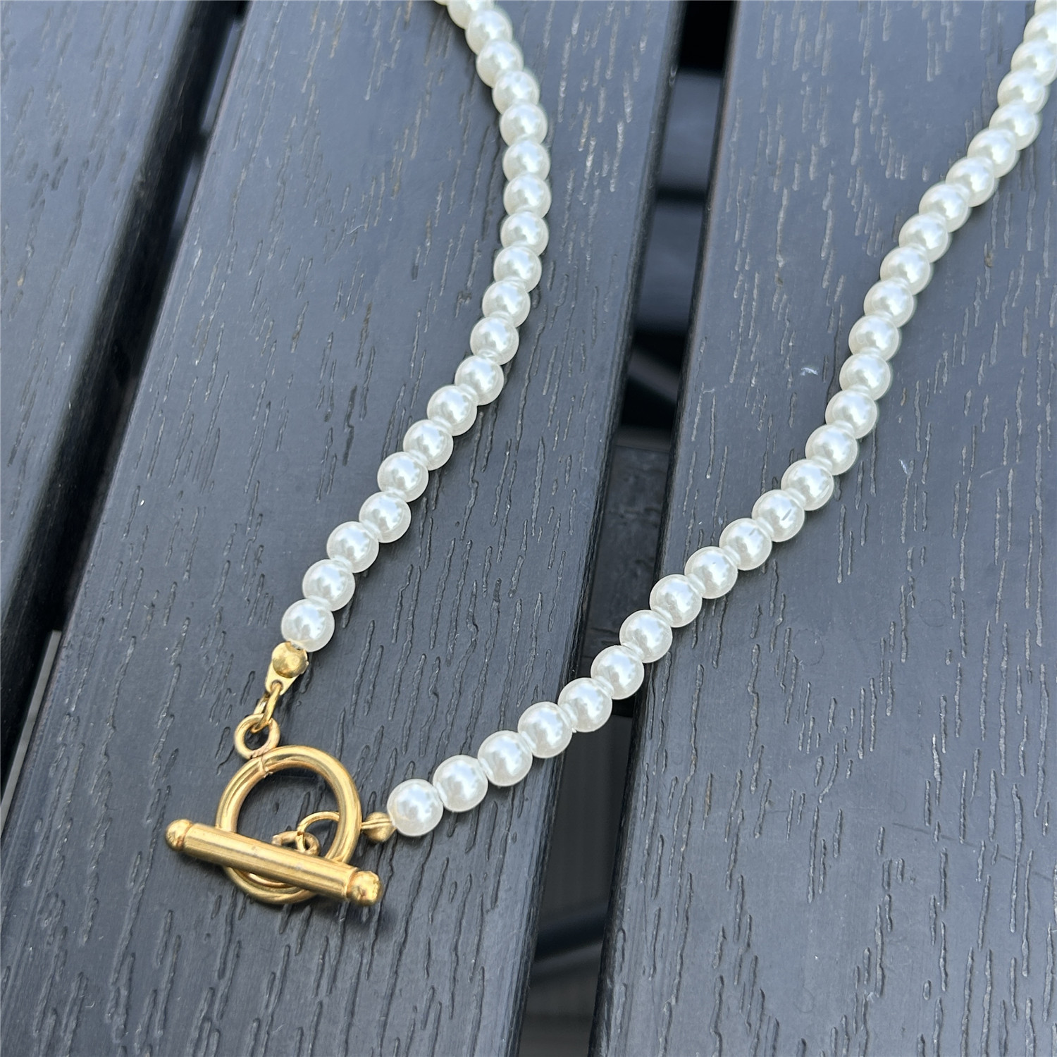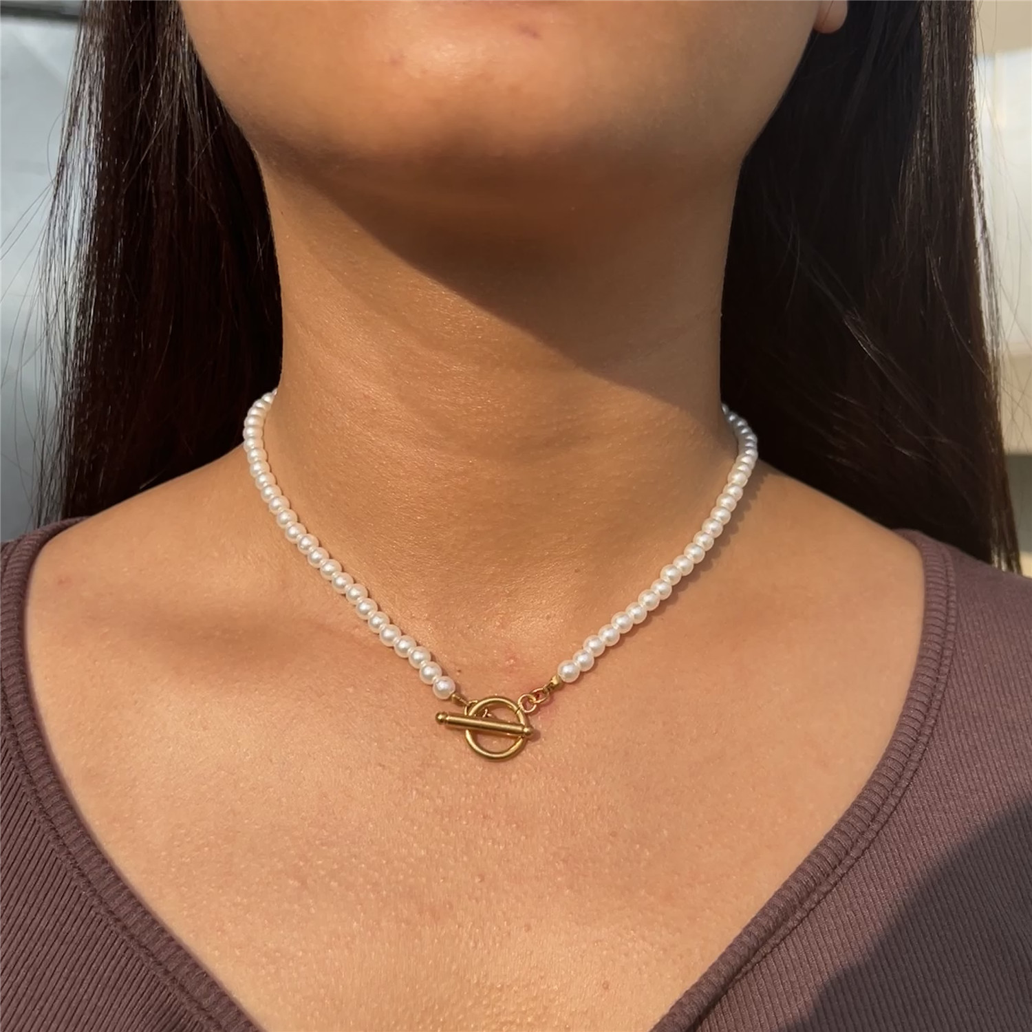Classic Pearl Choker with Gold Toggle Clasp – Elegant Stainless Steel Necklace For Women's
