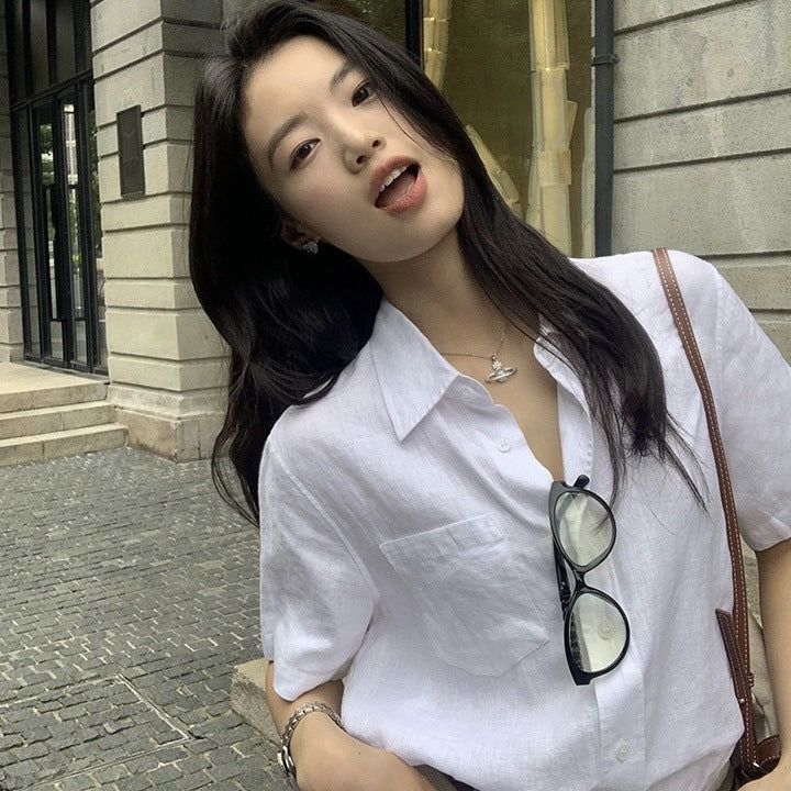 Color: white short sleeve shirt, blue short-sleeved shirt