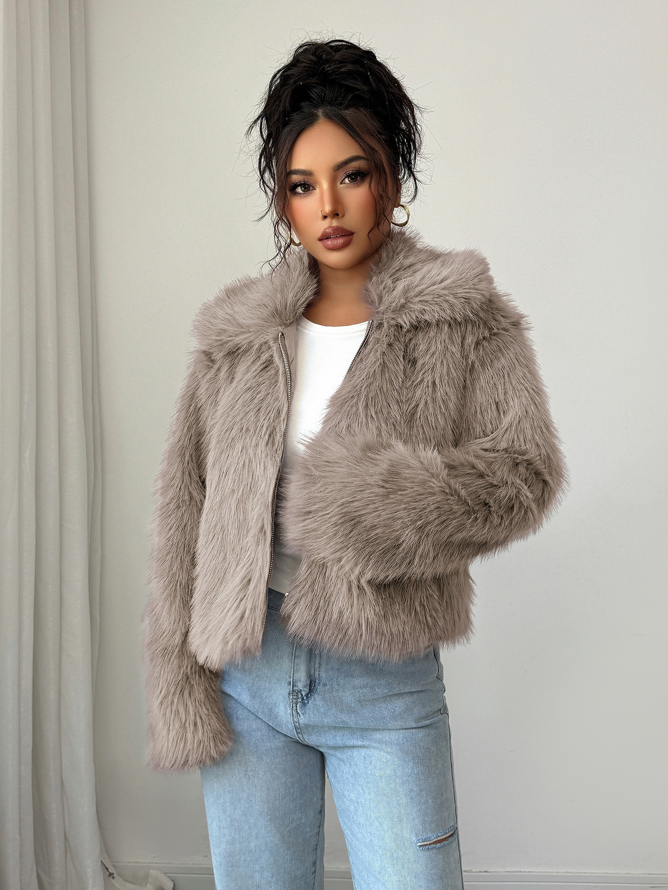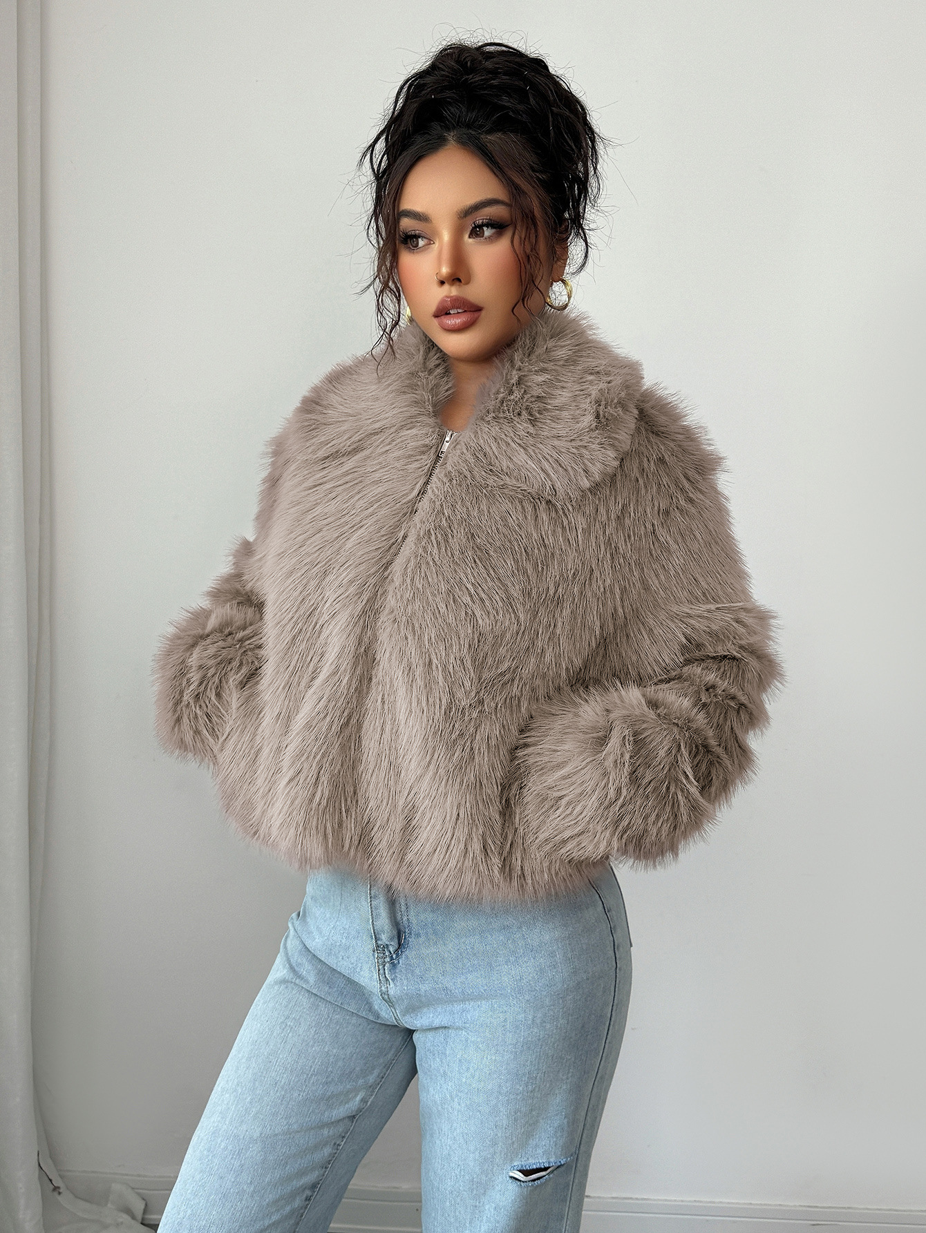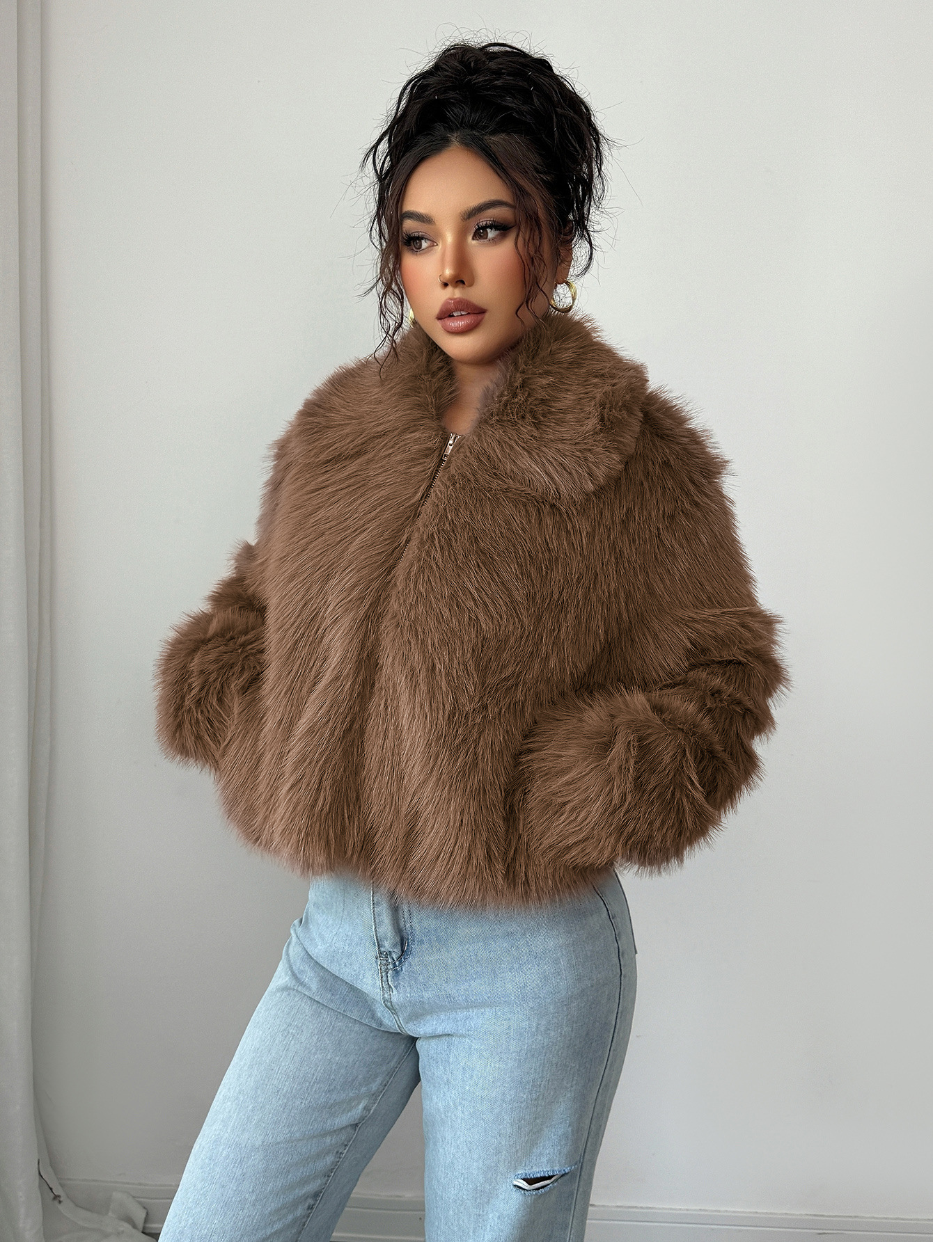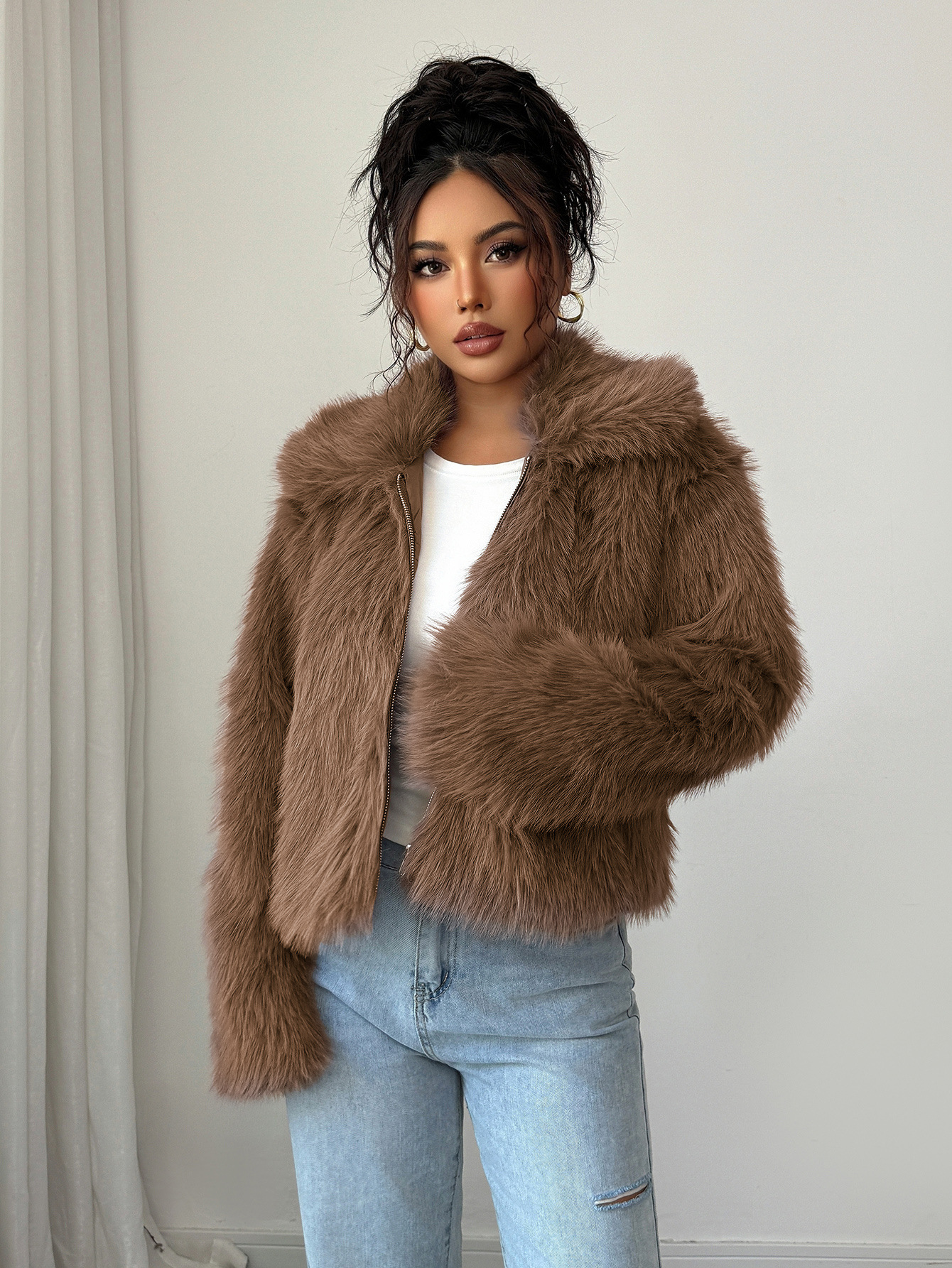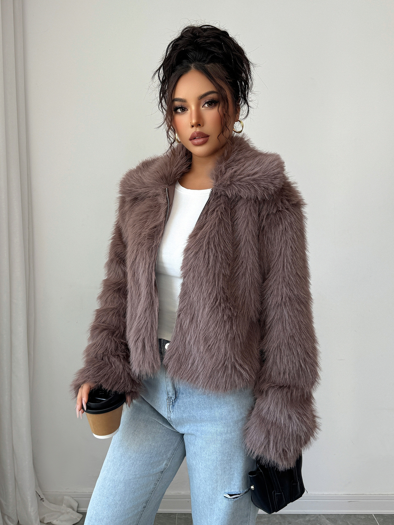 Elegant Elegant Style All-match Fluff Long-sleeved Overcoat Coat For Women