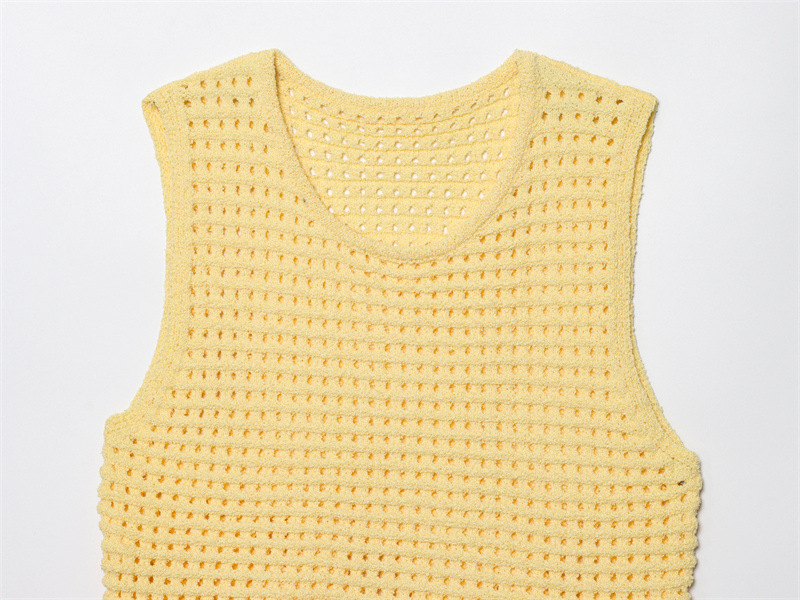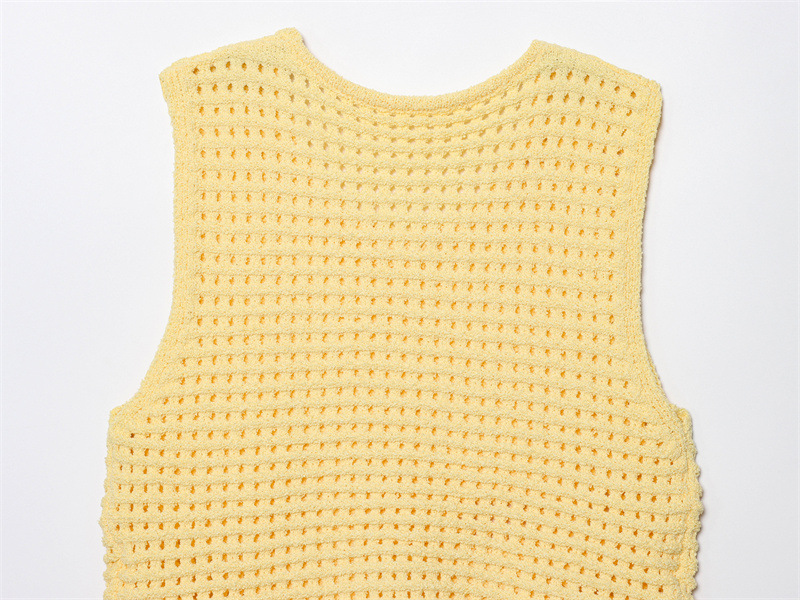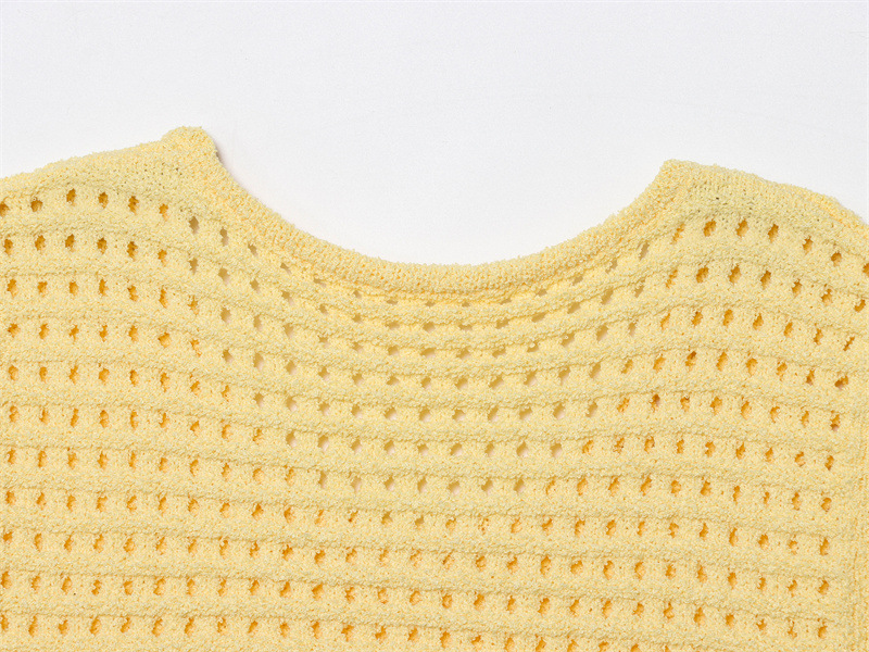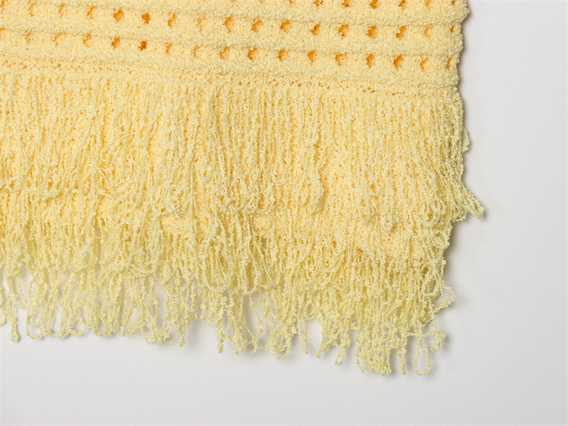 Fashionable Simple Decorated Tassel Plaid Knitted Top For Women