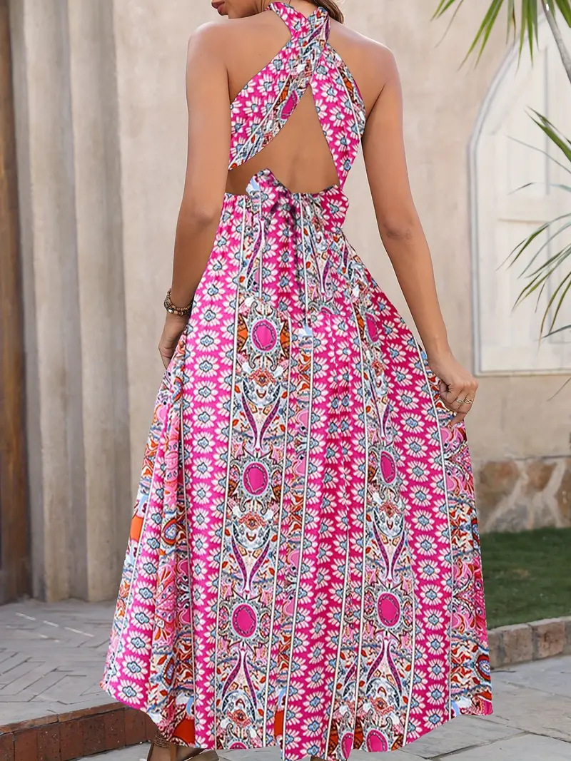 Graceful And Fashionable High Waist Bohemian Backless Dress For Women's