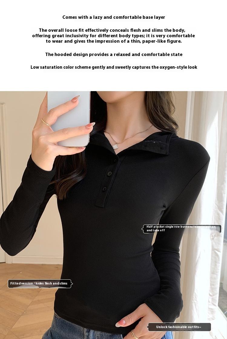 Half-open Buckle Hooded Sweater Autumn And Winter