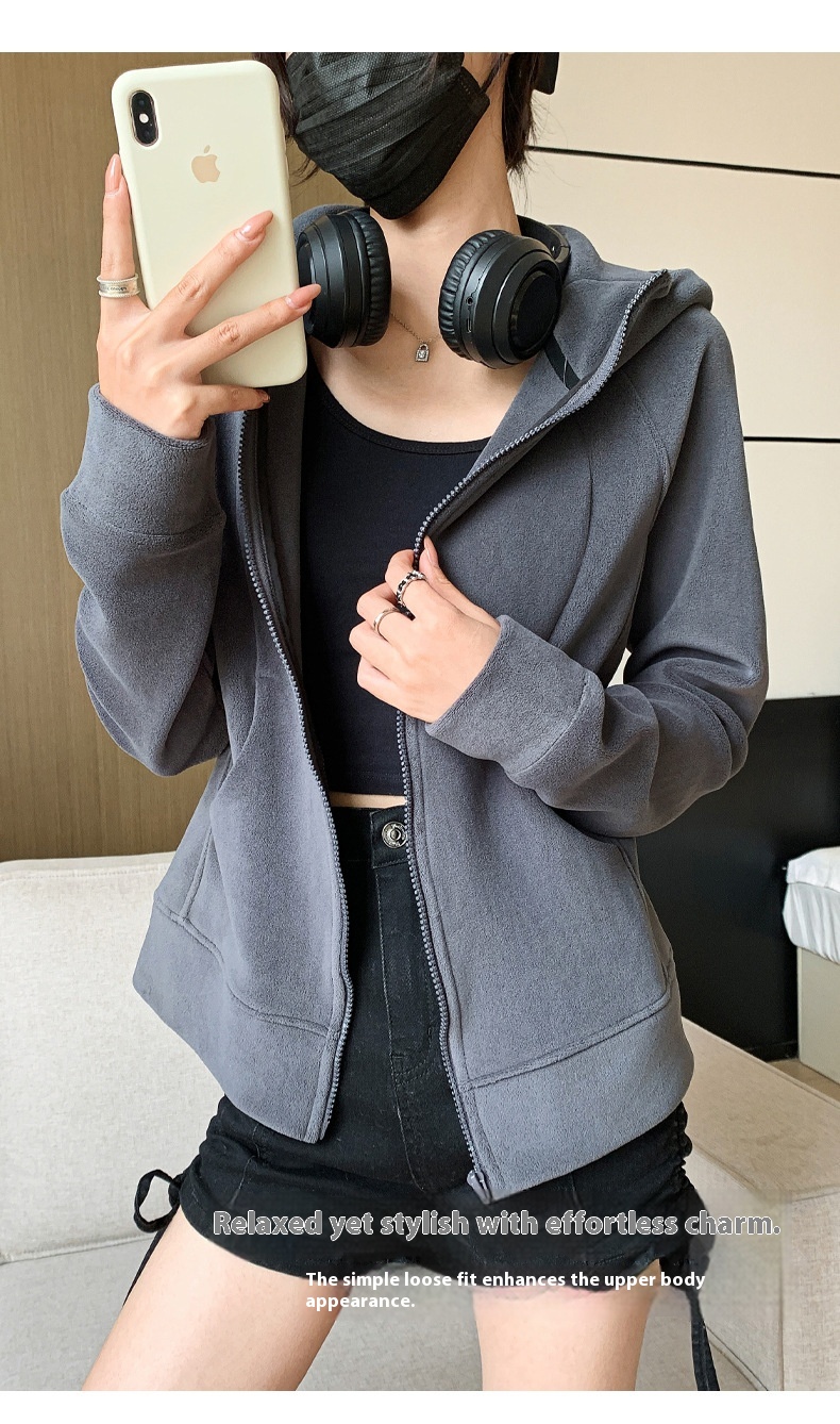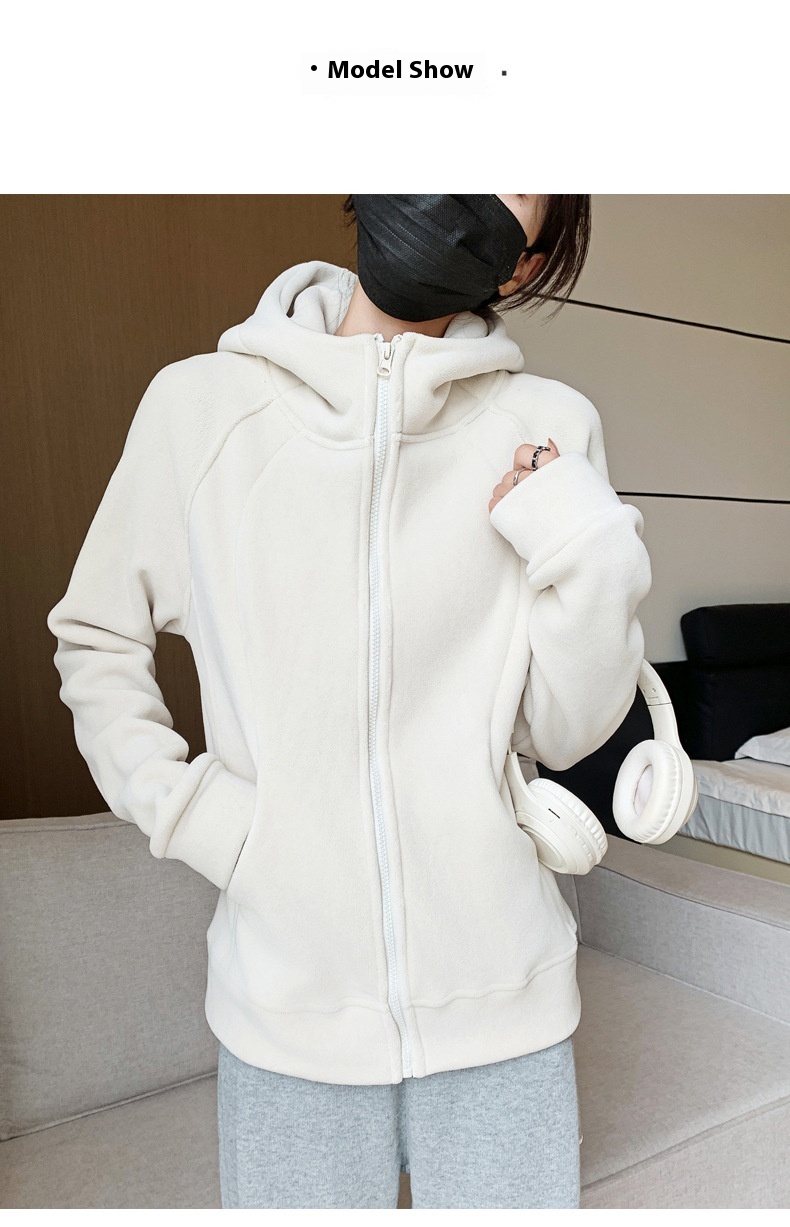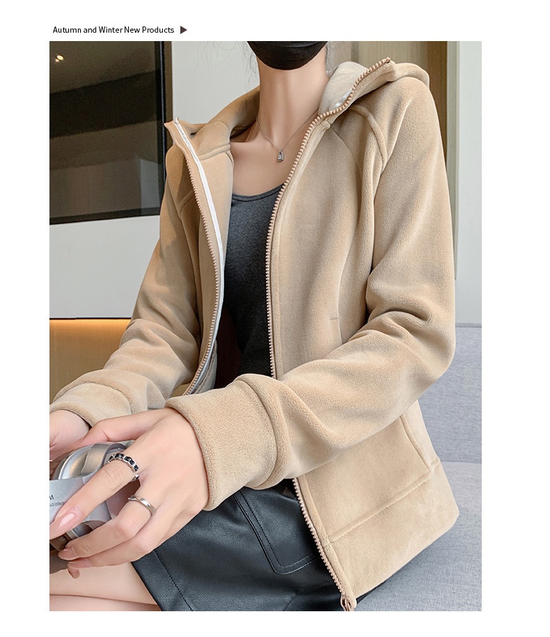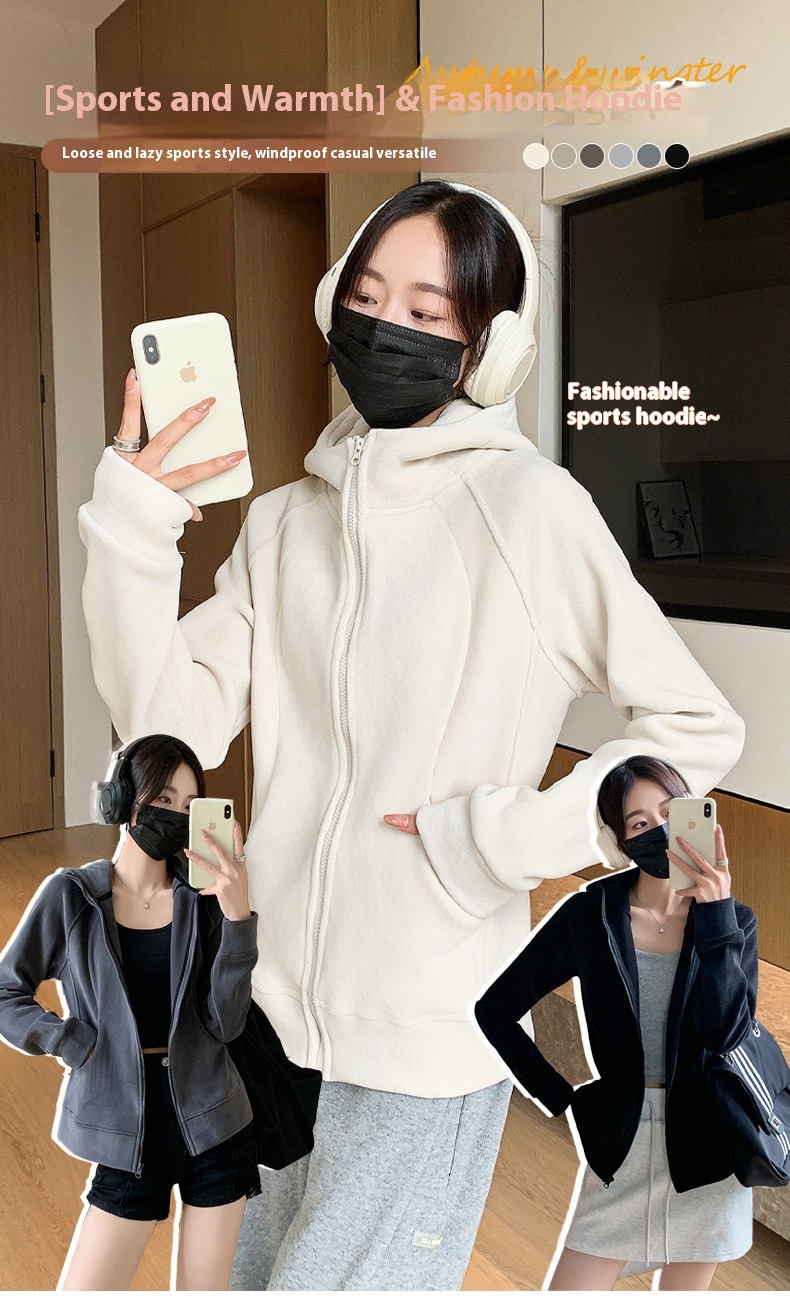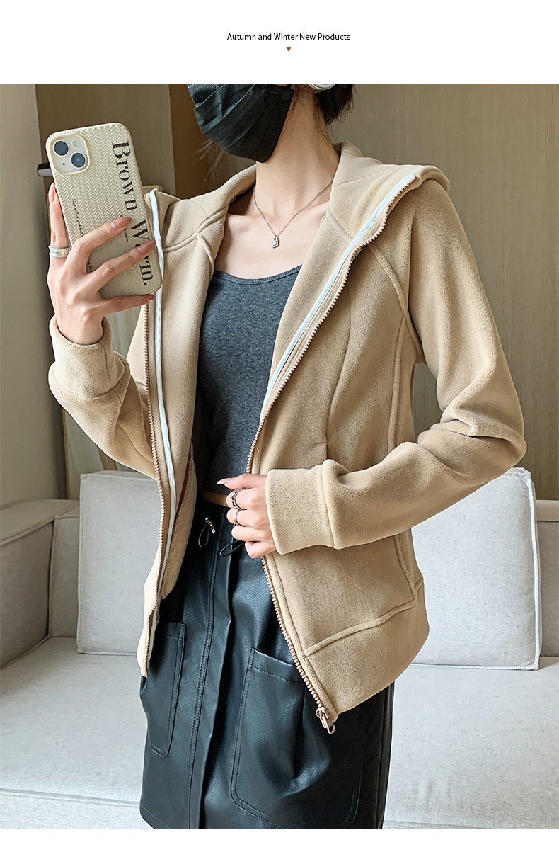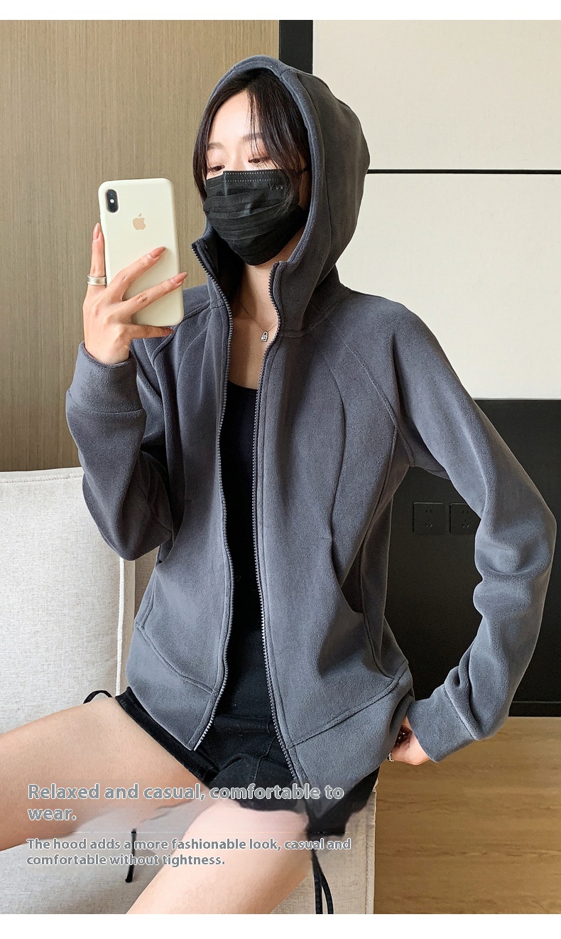 Hooded Zipper Sport Cardigan Coat Female Brushed Hoody