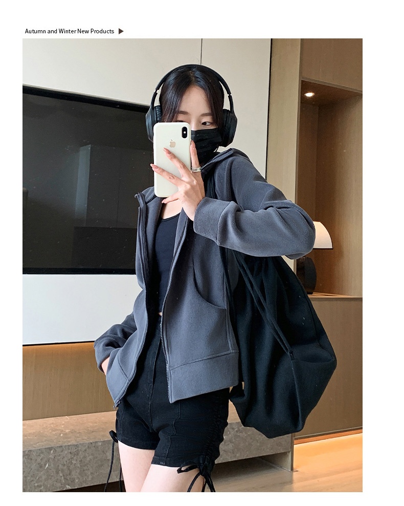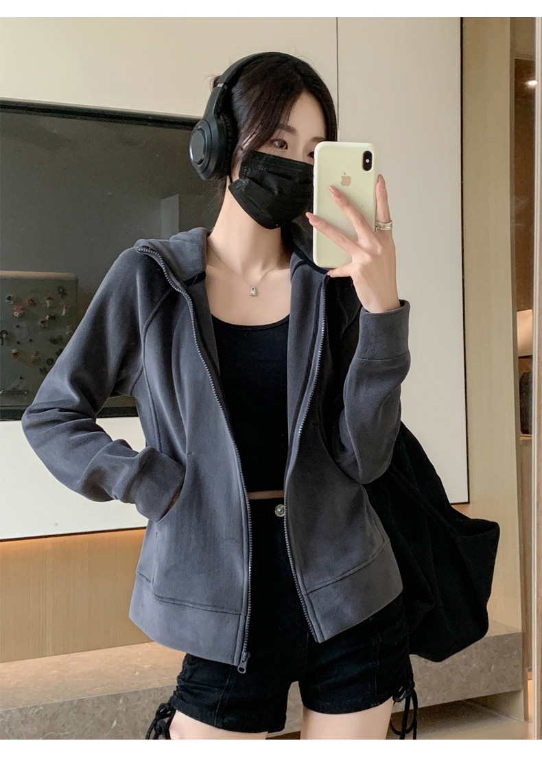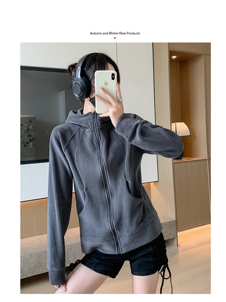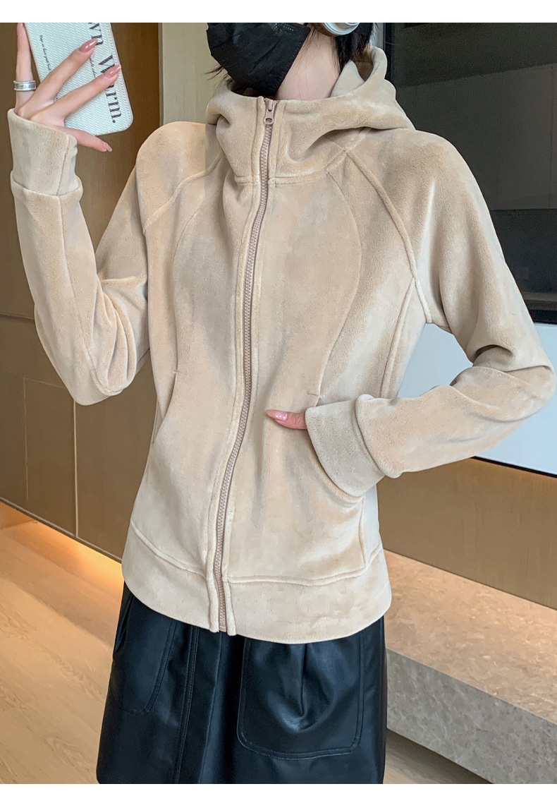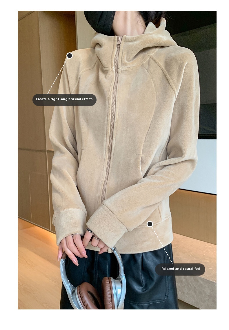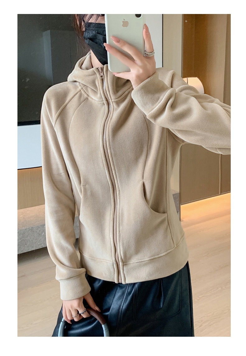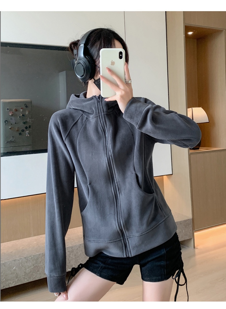 Hooded Zipper Sport Cardigan Coat Female Brushed Hoody