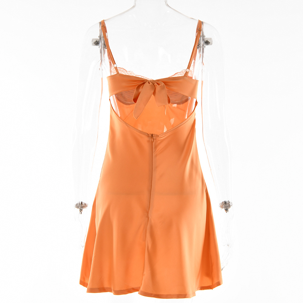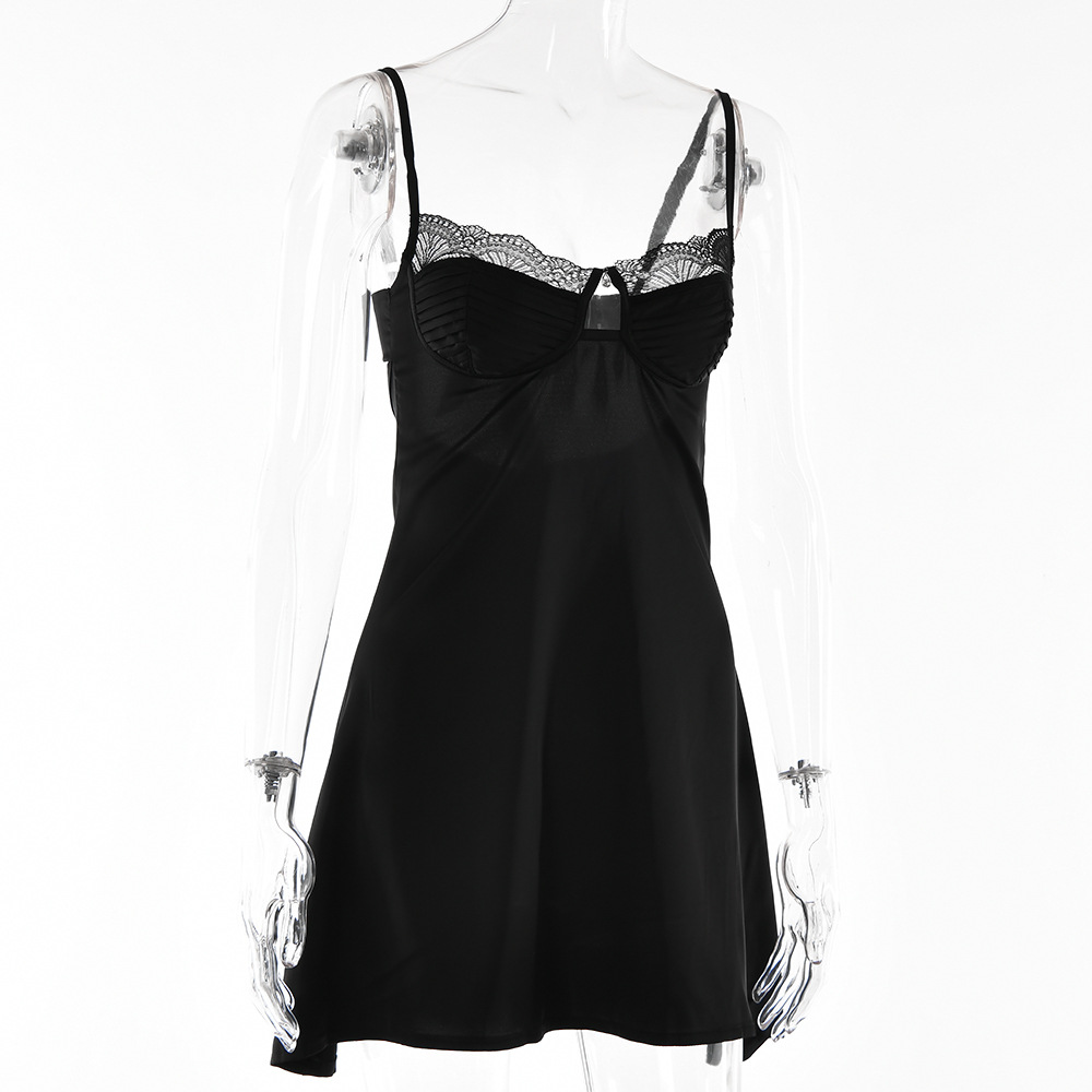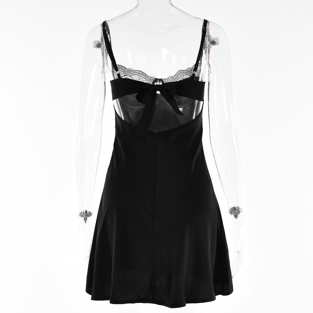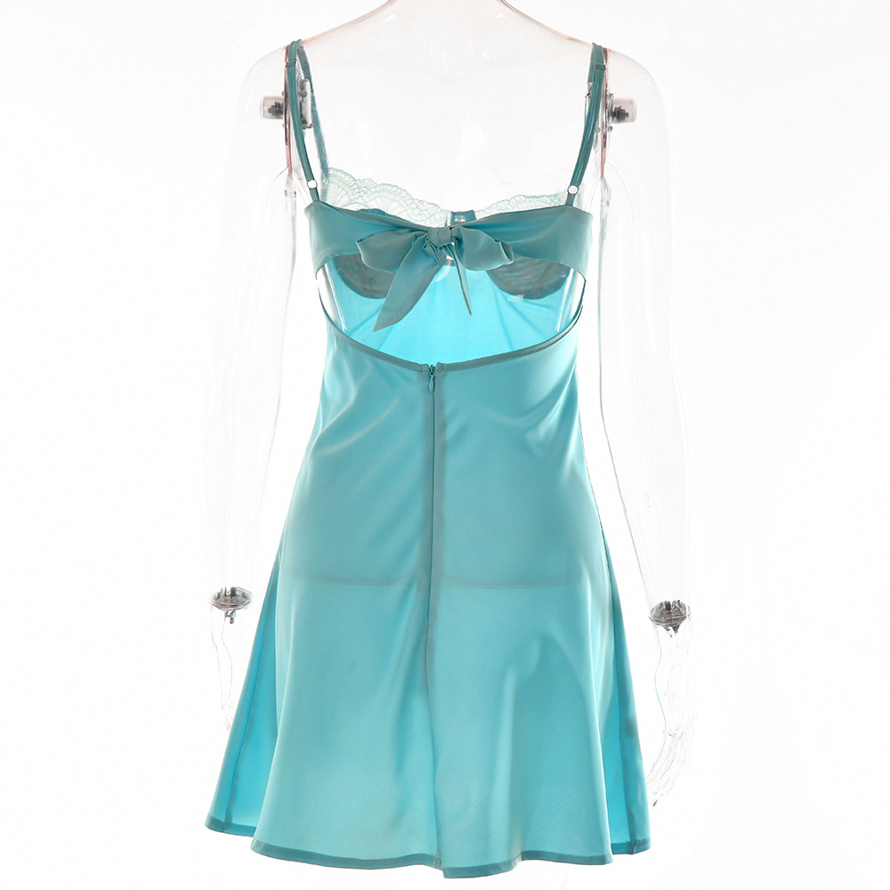 Lace Splicing Sling Short Skirt Lace-up Low-cut Dress