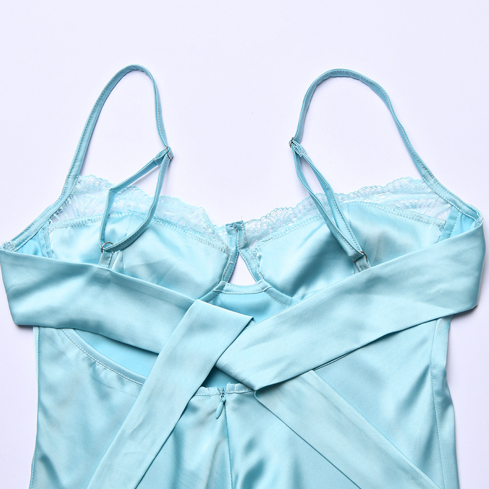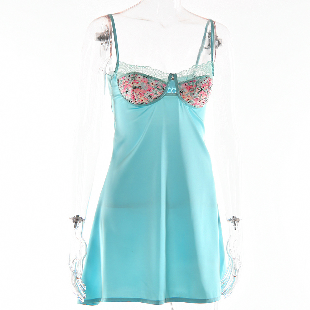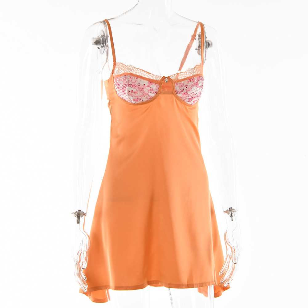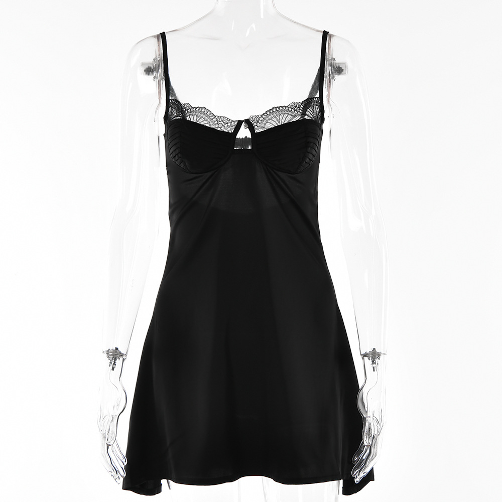 Lace Splicing Sling Short Skirt Lace-up Low-cut Dress