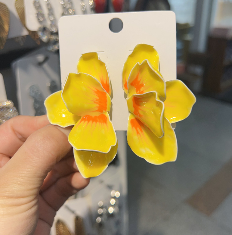 Pastoral Style Alloy Oil-spot Glaze Flowers Earrings
