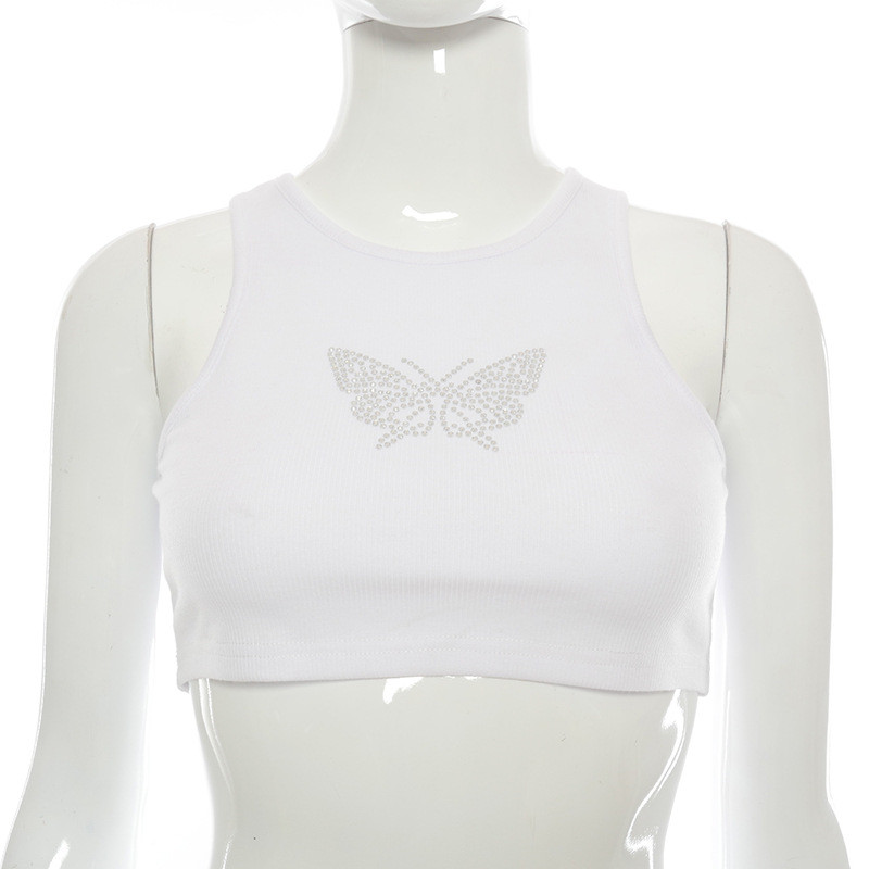 Round Neck Sleeveless Navel Hot Rhinestone Craft Small Vest