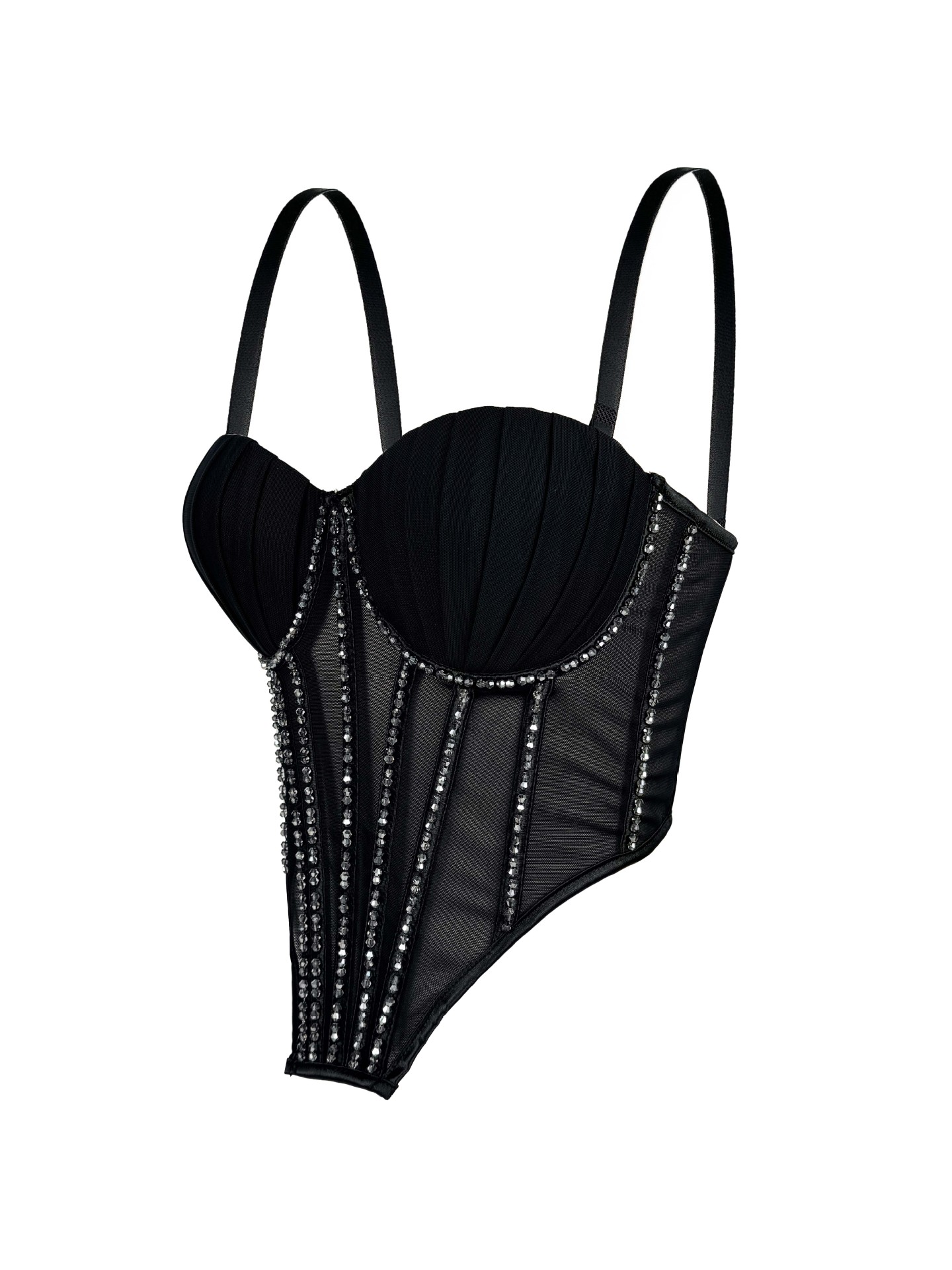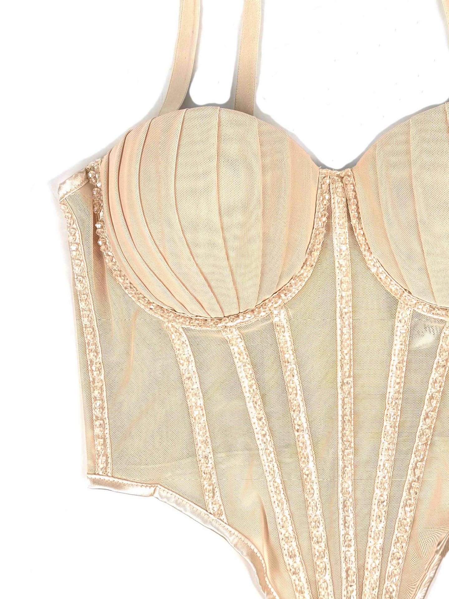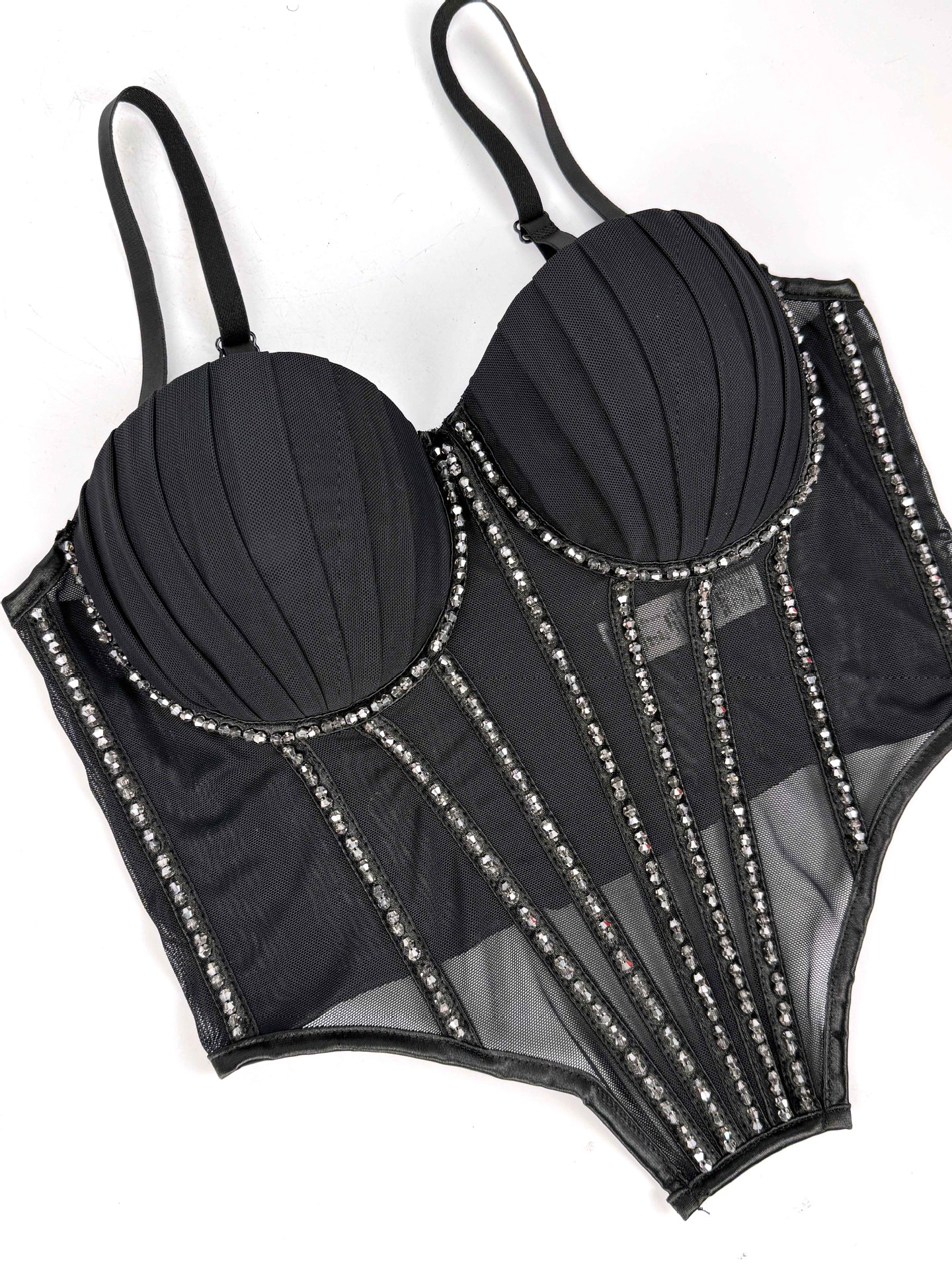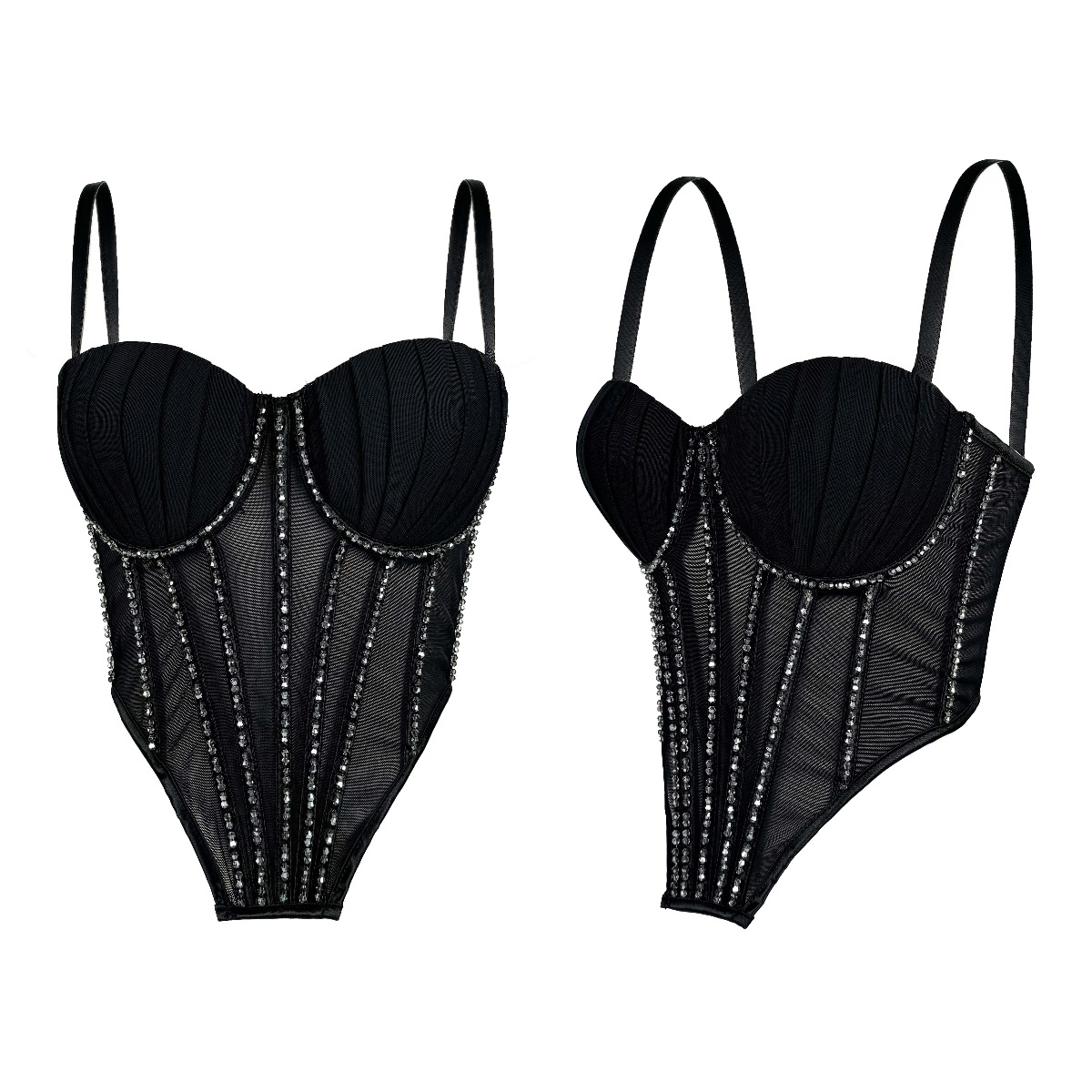 Sexy Mesh With Braces And Breast Pad Can Be Worn Outside Rhinestone Fishbone Plastic Bra