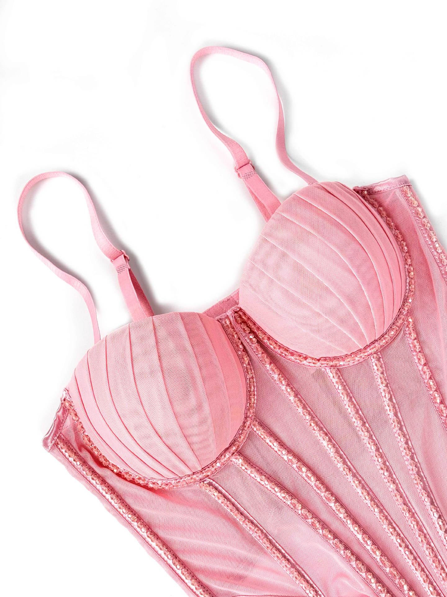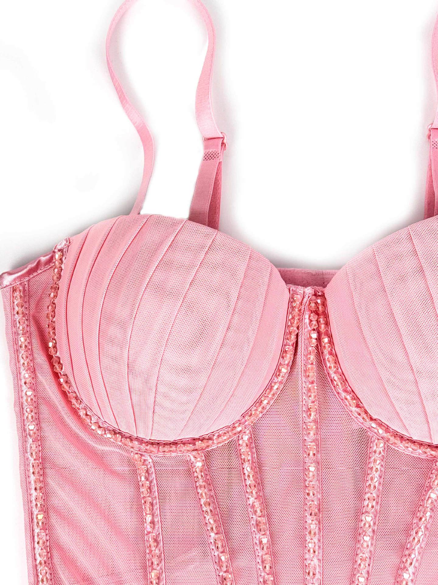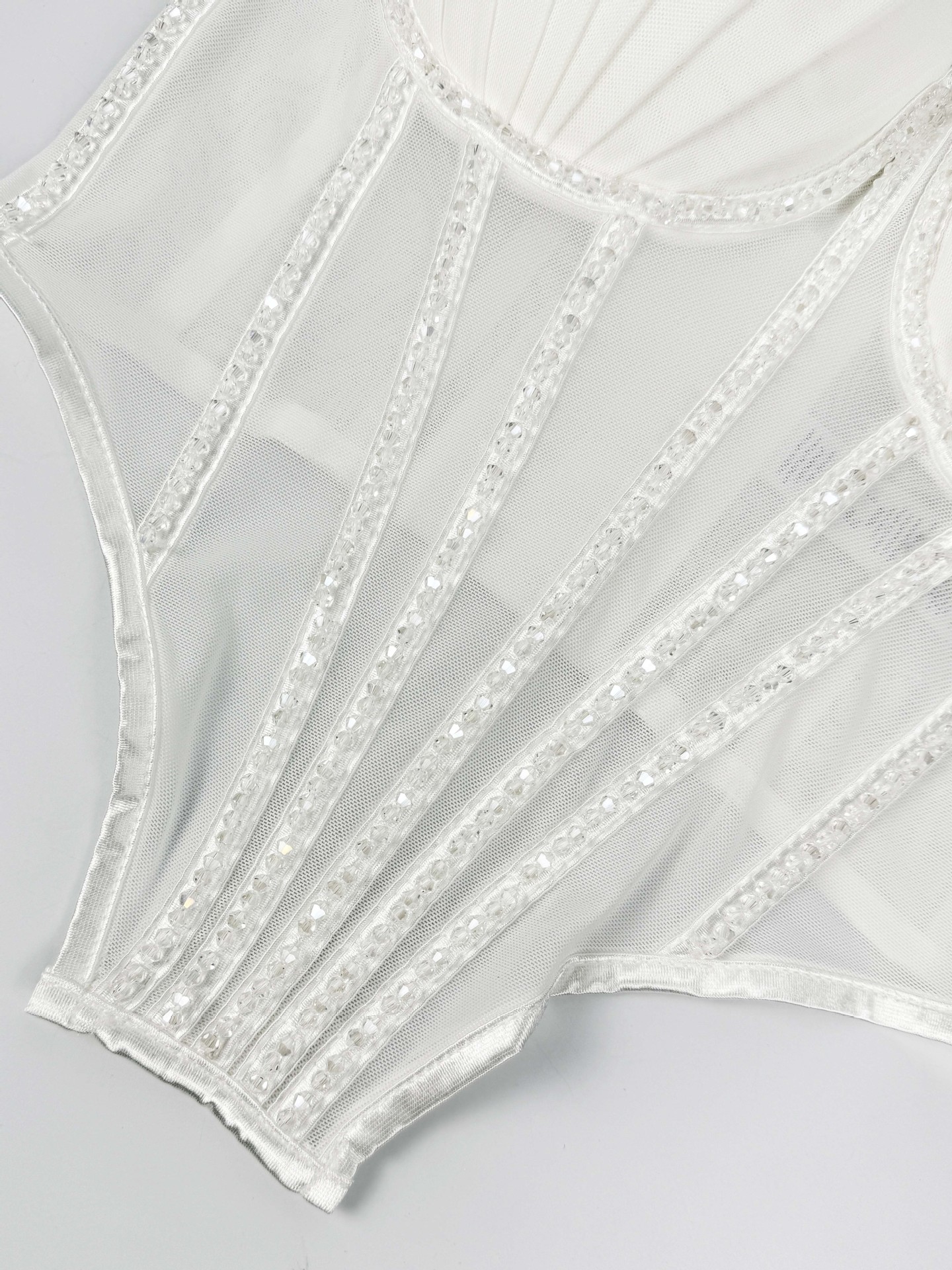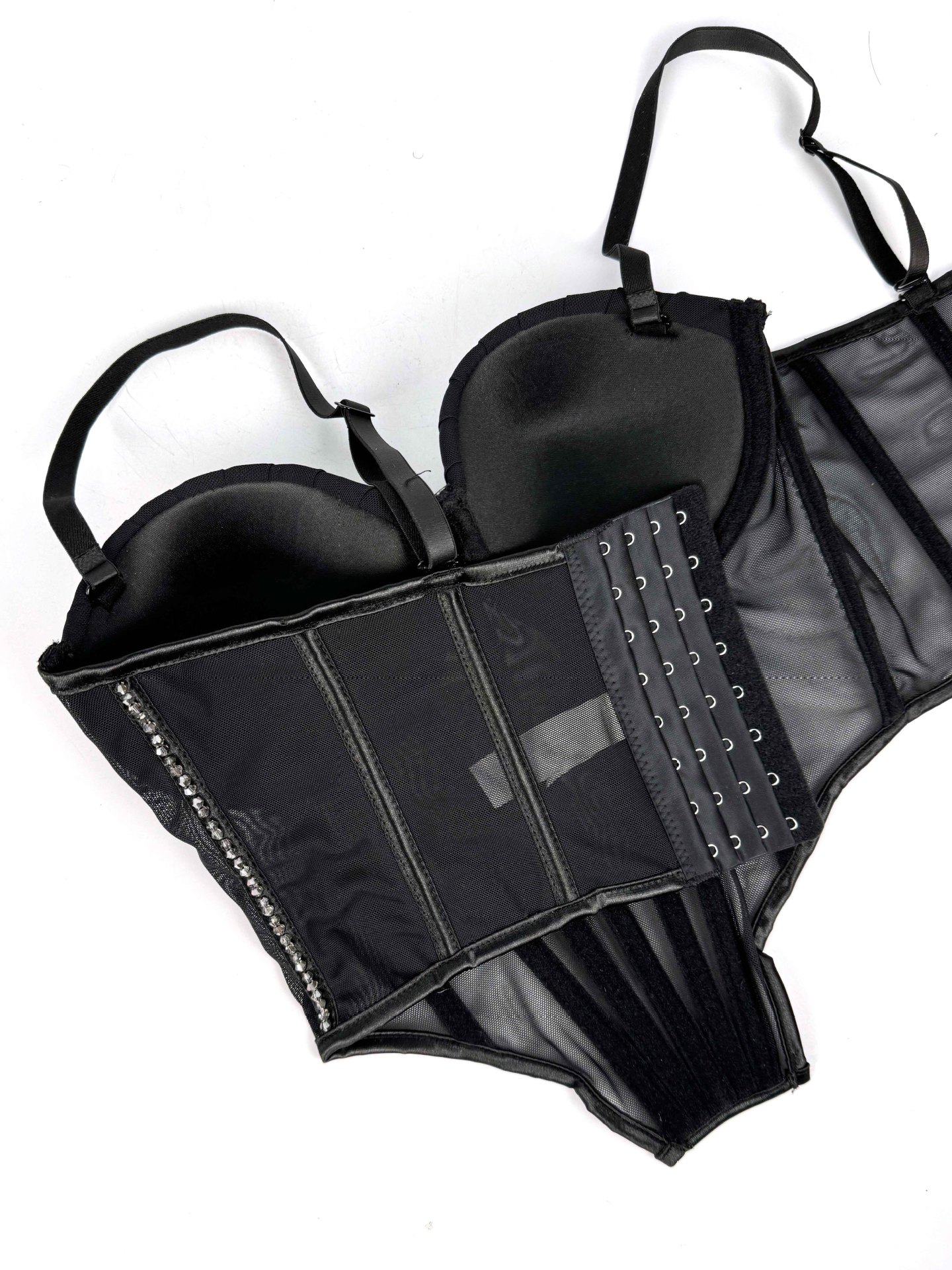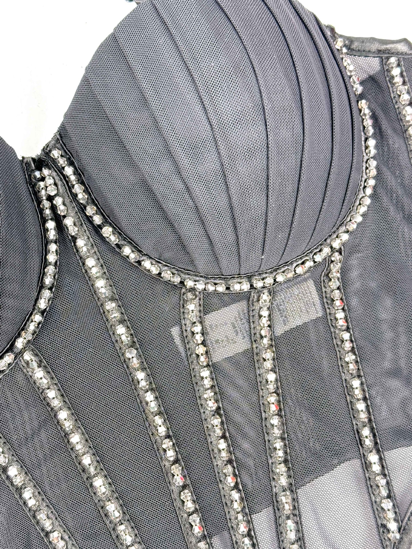 Sexy Mesh With Braces And Breast Pad Can Be Worn Outside Rhinestone Fishbone Plastic Bra