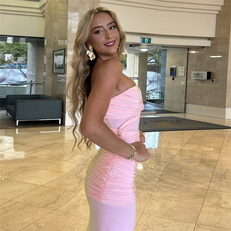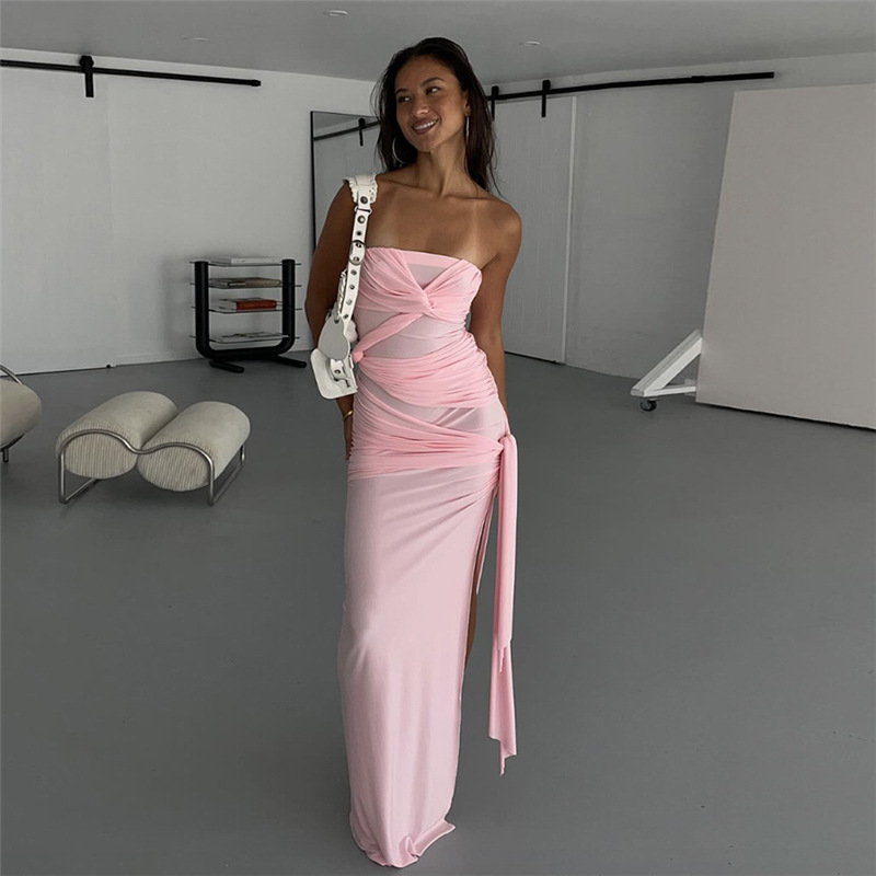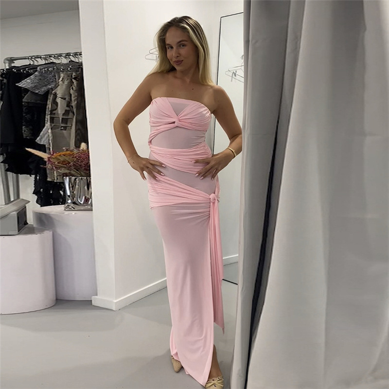 Sexy Temperament Twist Knot Backless Side Slit Tube Top Solid Color Dress