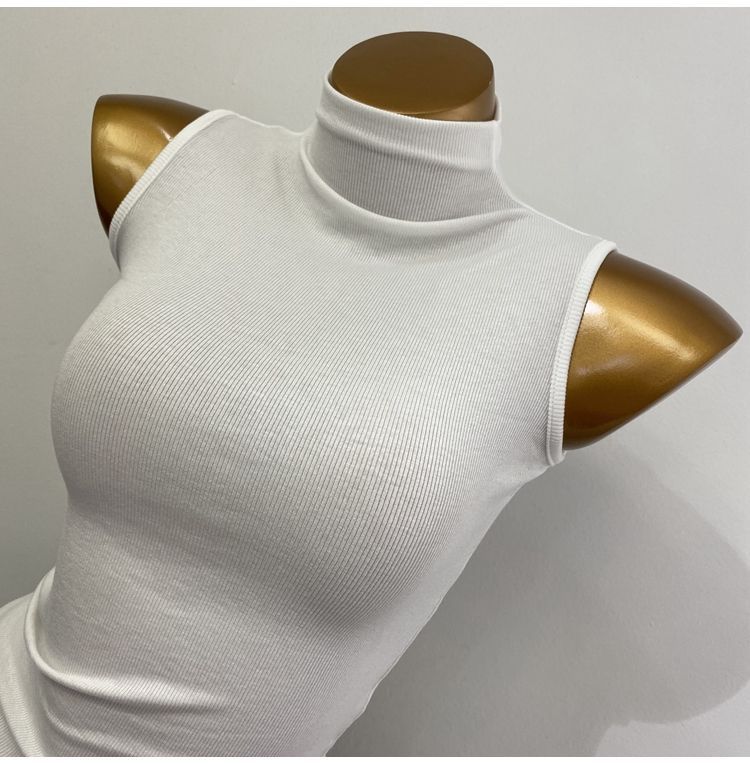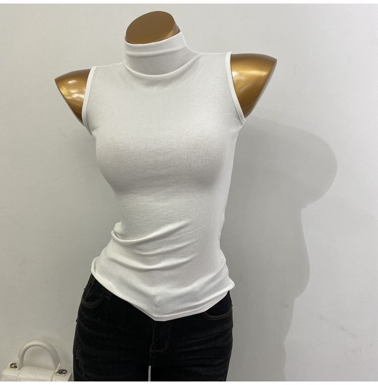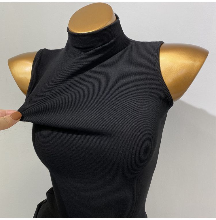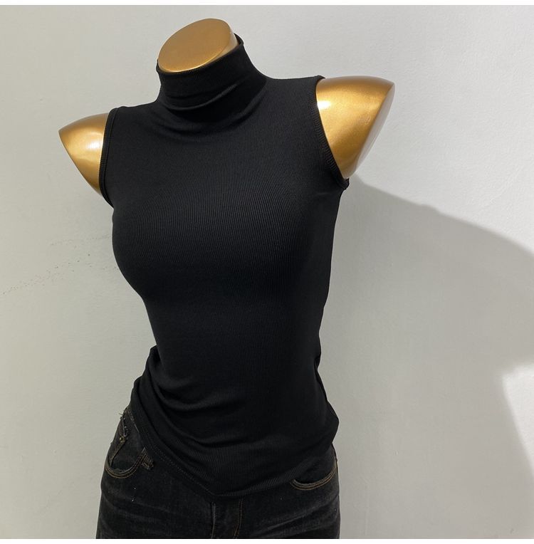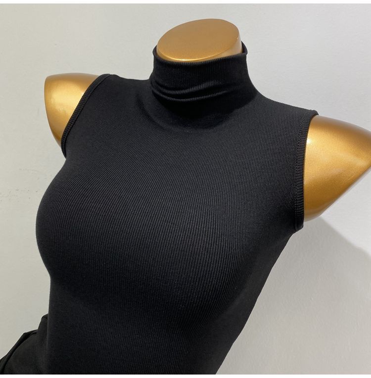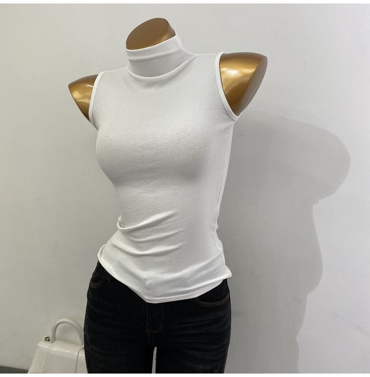 Sleek Sleeveless Turtleneck Top - Multi-Color Options Korean Style Half Turtleneck Sleeveless Vest Top