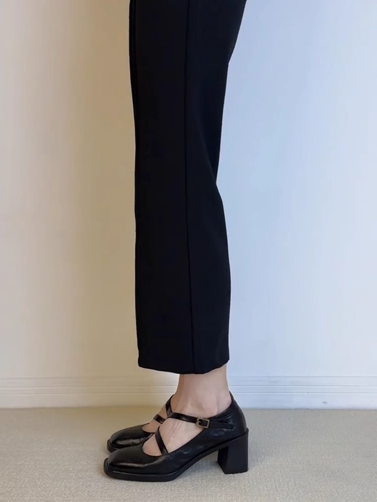 Square Toe High Heel Mary Jane Shoes Female Chunky Heel Low-cut