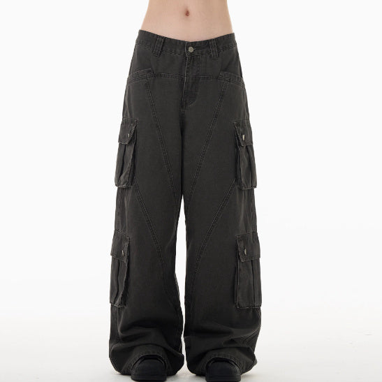 Streetwear Cargo Pants – Oversized Multi-Pocket Wide-Leg Trousers Retro Deconstruction Cargo Jeans Men And Women Loose Casual