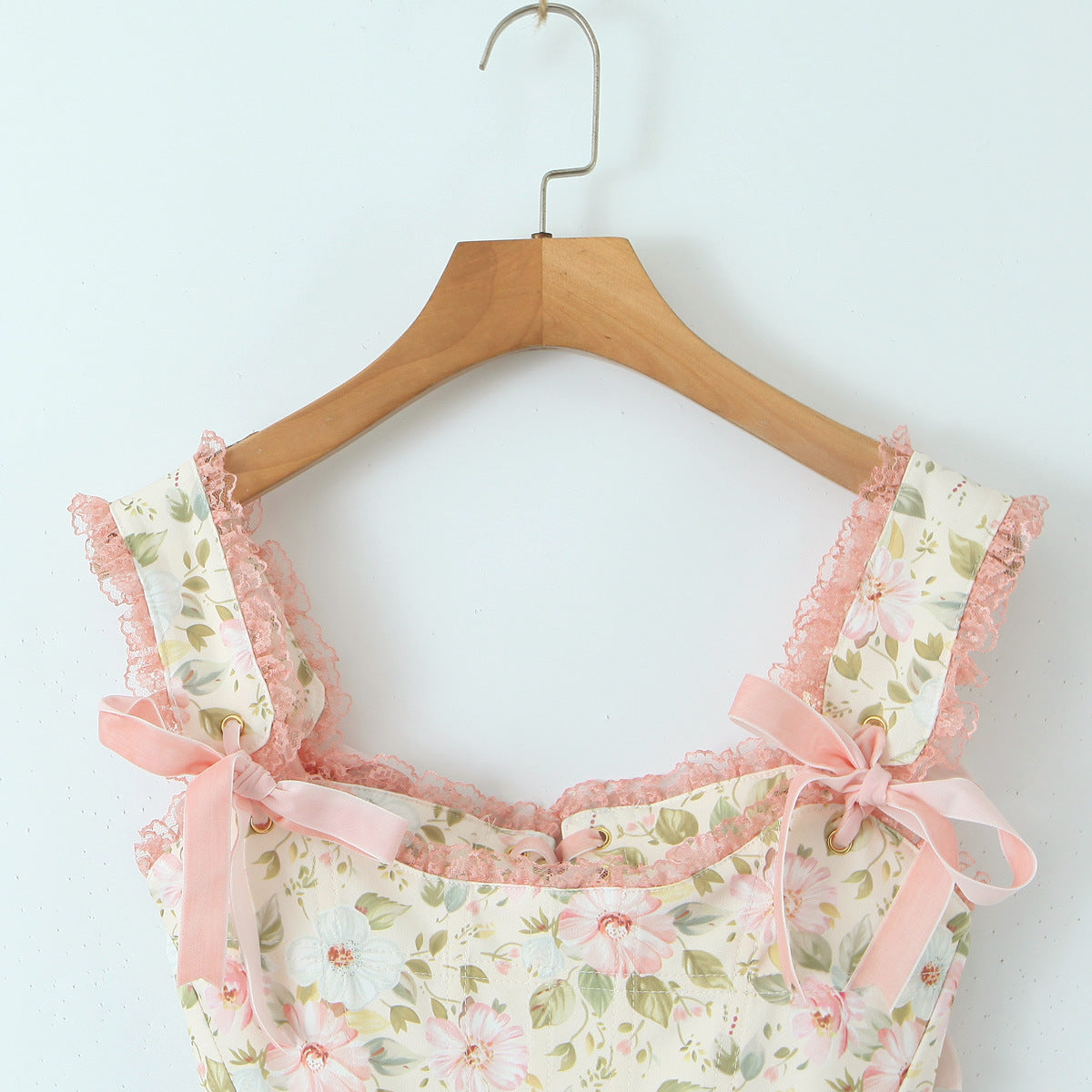 Sweet Printed Two-piece Women's Pure Lace Lace Lace-up Short Camisole Skirt