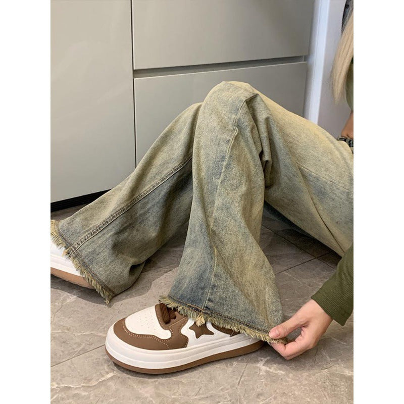 Washed Daze – Grunge-Dyed Wide Leg Denim Retro Blue Distressed Wide-leg Jeans For Women